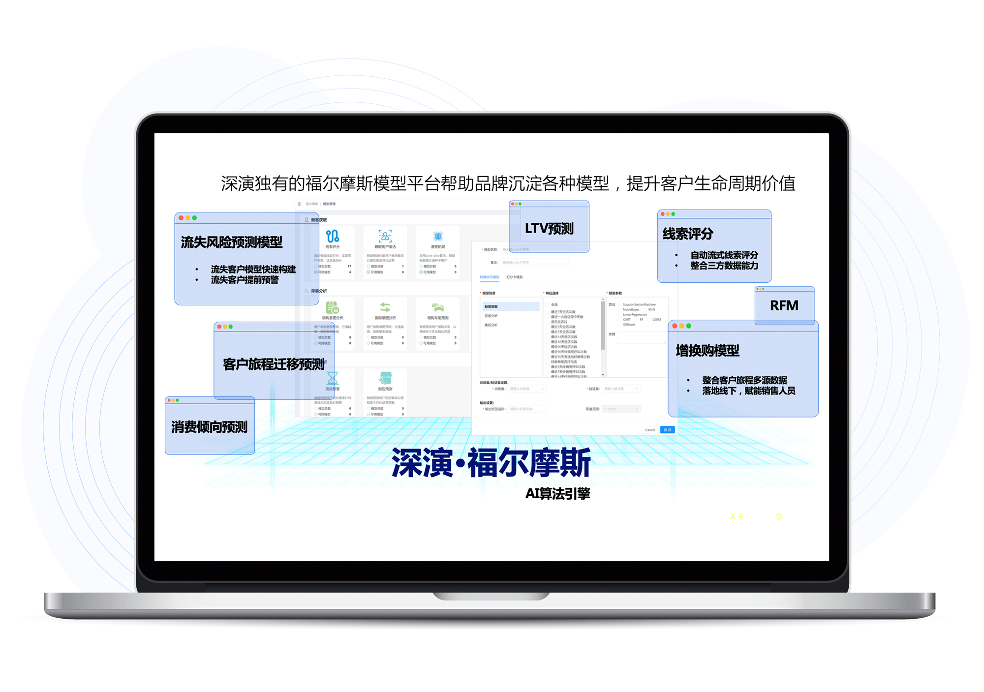 福尔摩斯AI是PA视讯智能自主研发的AI算法模型平台,内嵌广告和用户运营两大模型体系,为PA视讯智能营销决策云提供底层能力支撑,提升客户全生命周期价值